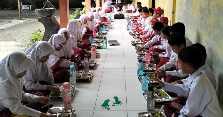 Sejak bel masuk berbunyi, wajah-wajah polos para siswa tampak berseri, matanya berbinar penuh rasa ingin tahu akan kelezatan menu bergizi yang telah disiapkan dengan penuh kasih.